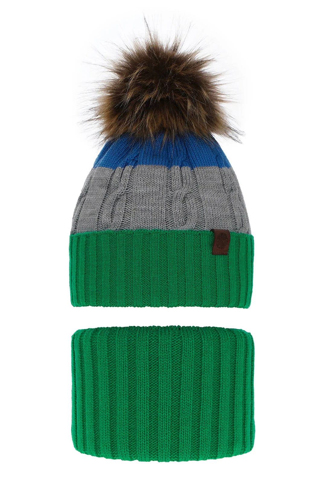 Komplet zimní chlapecký: čepice a tunel zelený s bambulí Karmel