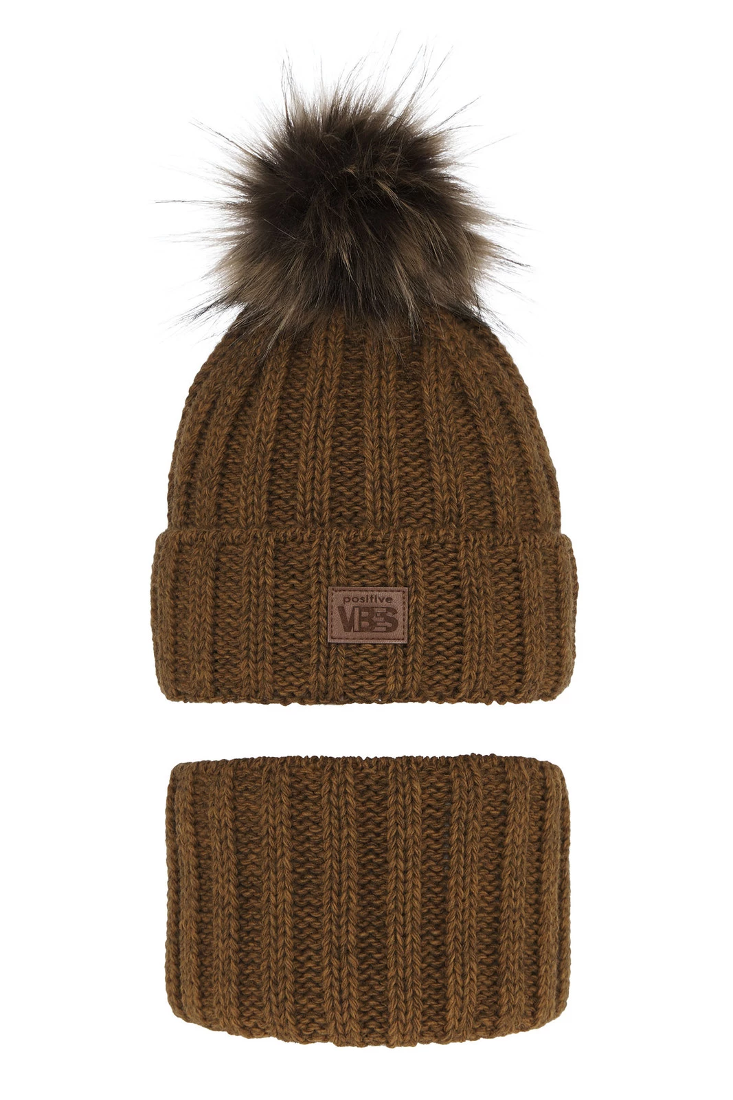 Komplet zimní chlapecký: čepice a tunel hořčicový s bambulí Remes