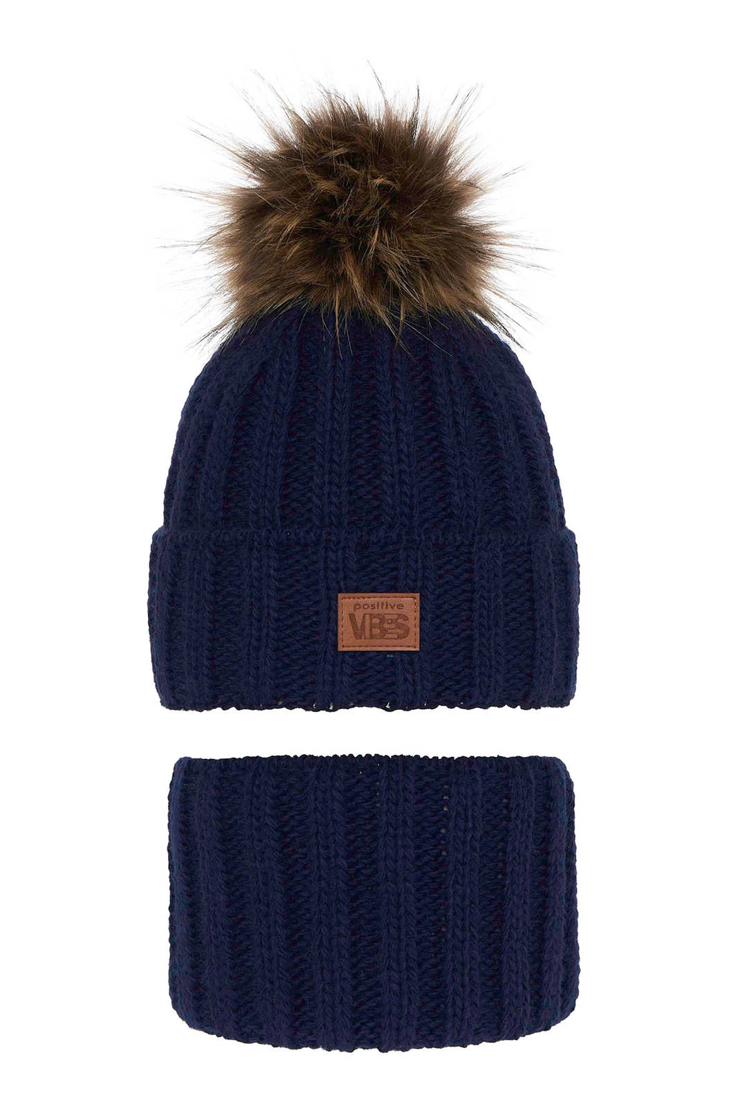 Komplet zimní chlapecký: čepice a tunel tmavě modrý s bambulí Remes