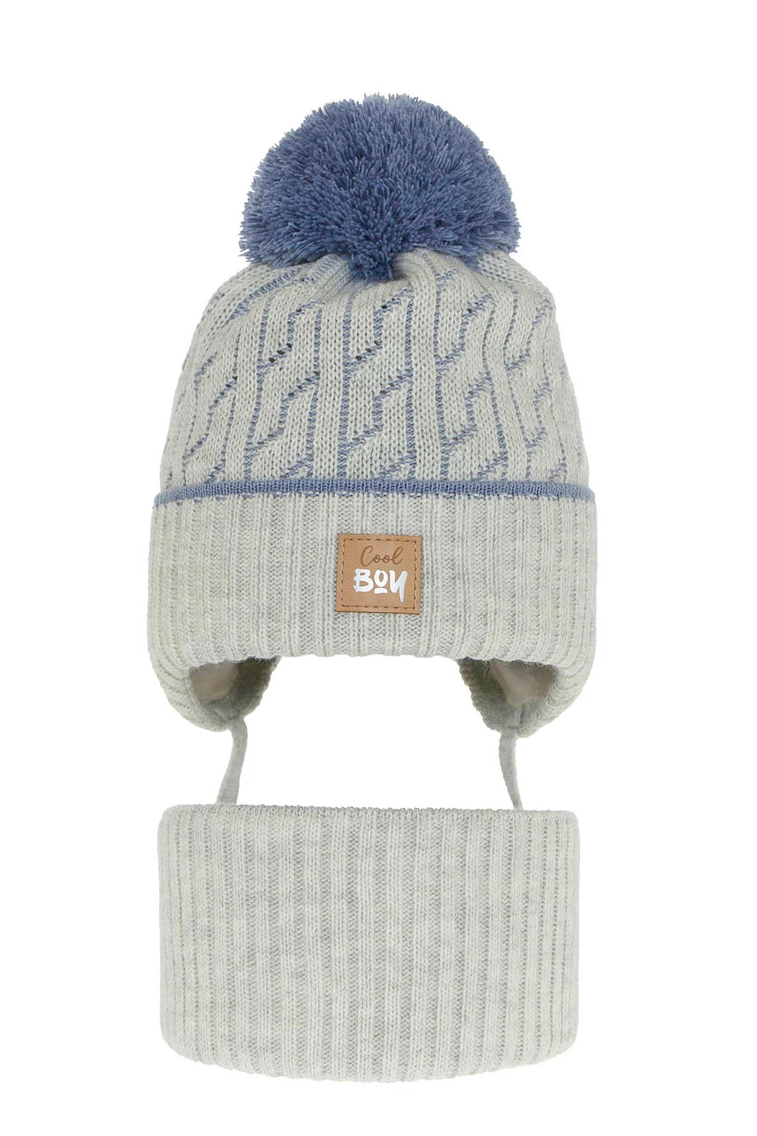 Komplet zimní chlapecký: čepice a tunel šedý s bambulí Pikolo