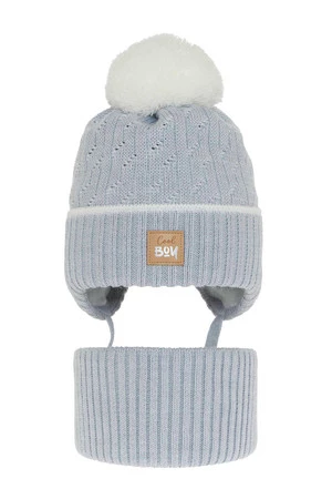 Komplet zimní chlapecký: čepice a tunel světle modrý s bambulí Pikolo