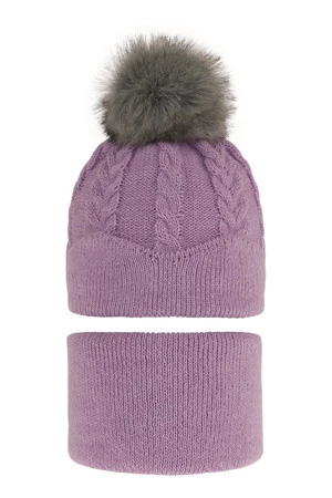 Komplet zimní dívčí: čepice a tunel fialový s bambulí Etula