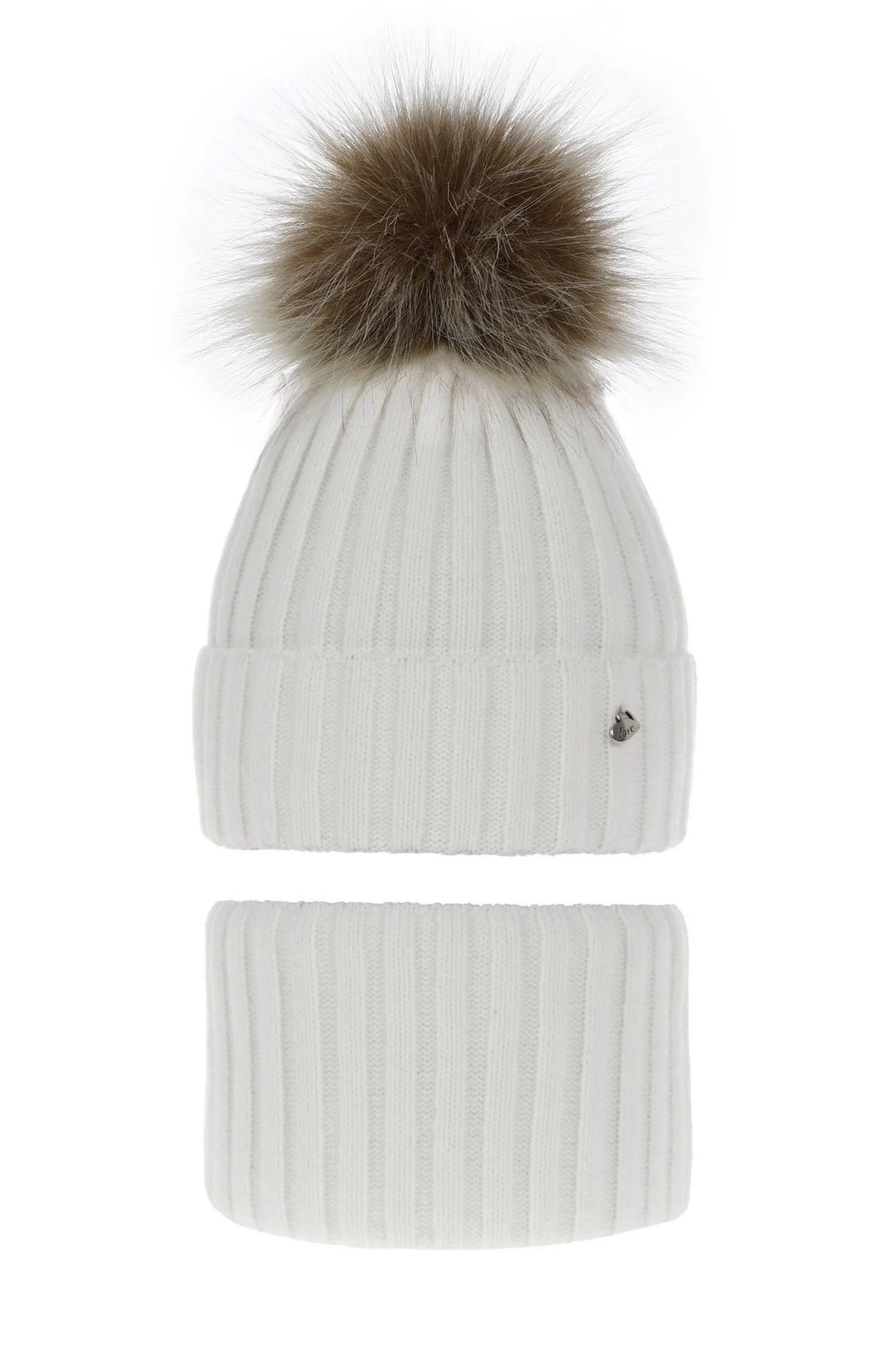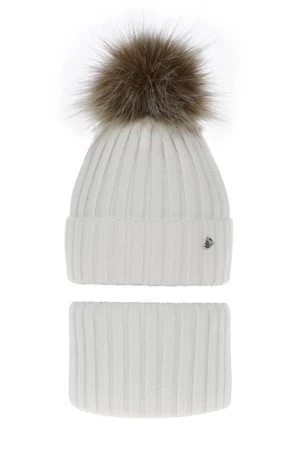 Komplet zimní dívčí: čepice a tunel bílý s bambulí Wilma