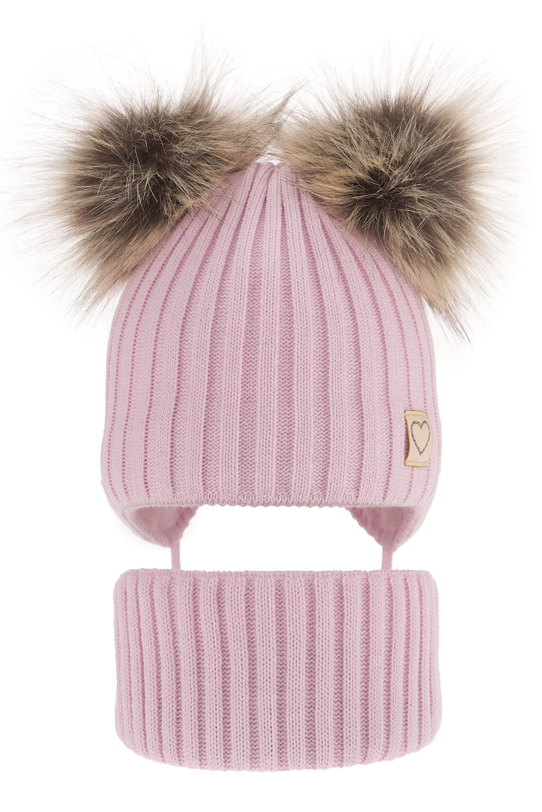 Komplet zimní dívčí: čepice a tunel růžový se dvěma bambulemi Telisa