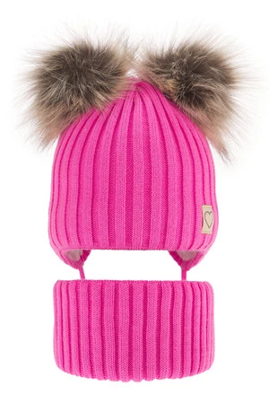 Komplet zimní dívčí: čepice a tunel růžový se dvěma bambulemi Telisa