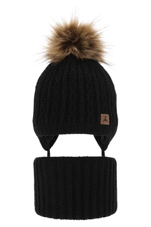 Kompletná zimná detská sada: čiapka a šál černý s bambuľou Pago