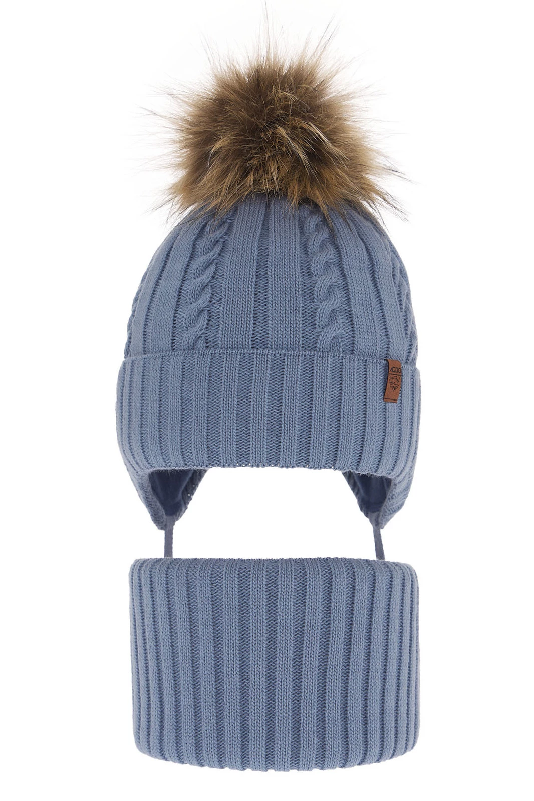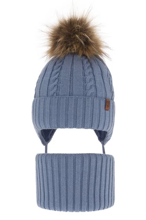 Kompletná zimná detská sada: čiapka a šál modrý s bambuľou Peter
