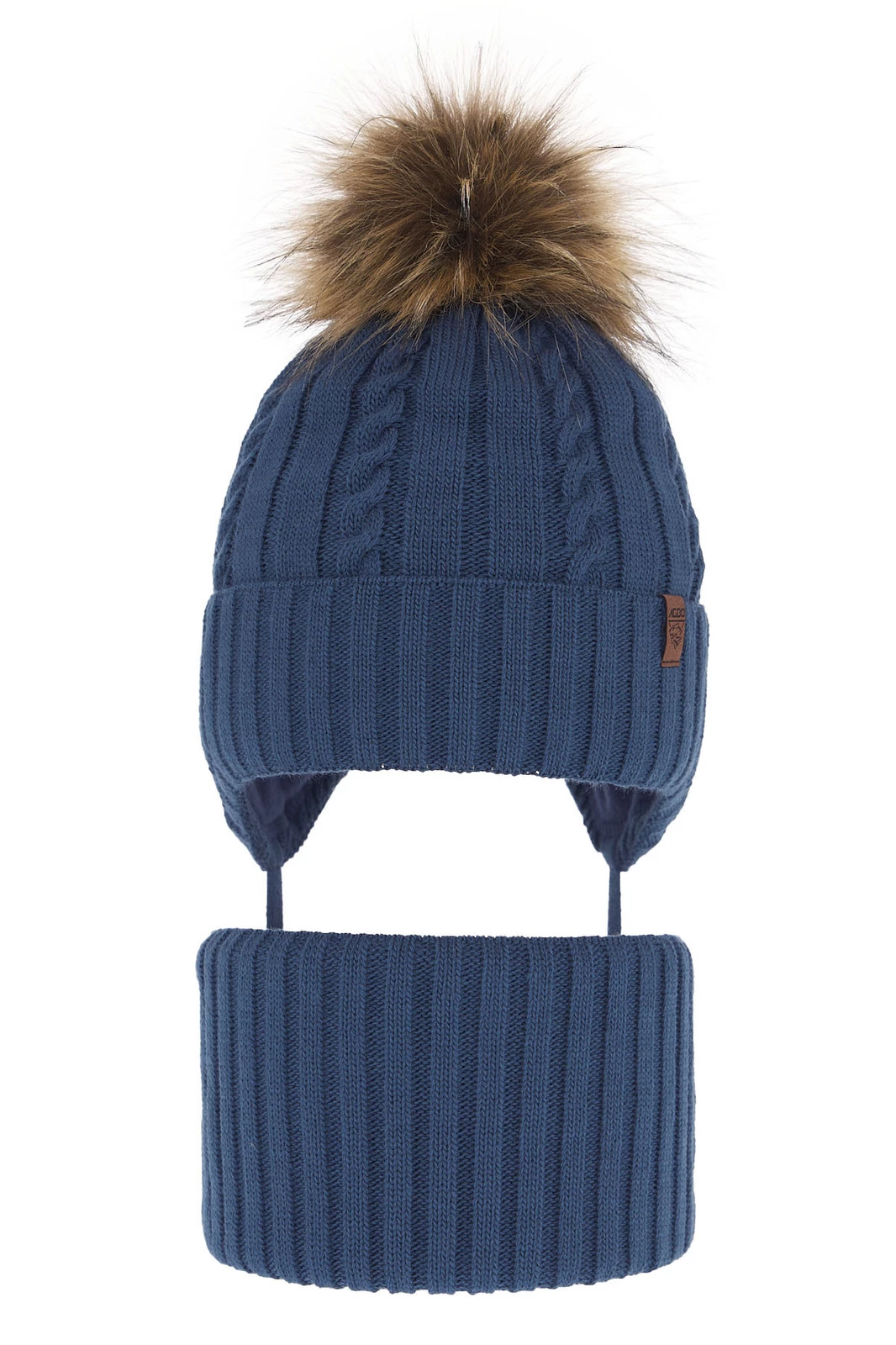 Kompletná zimná detská sada: čiapka a šál modrý s bambuľou Peter