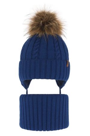 Kompletná zimná detská sada: čiapka a šál modrý s bambuľou Peter