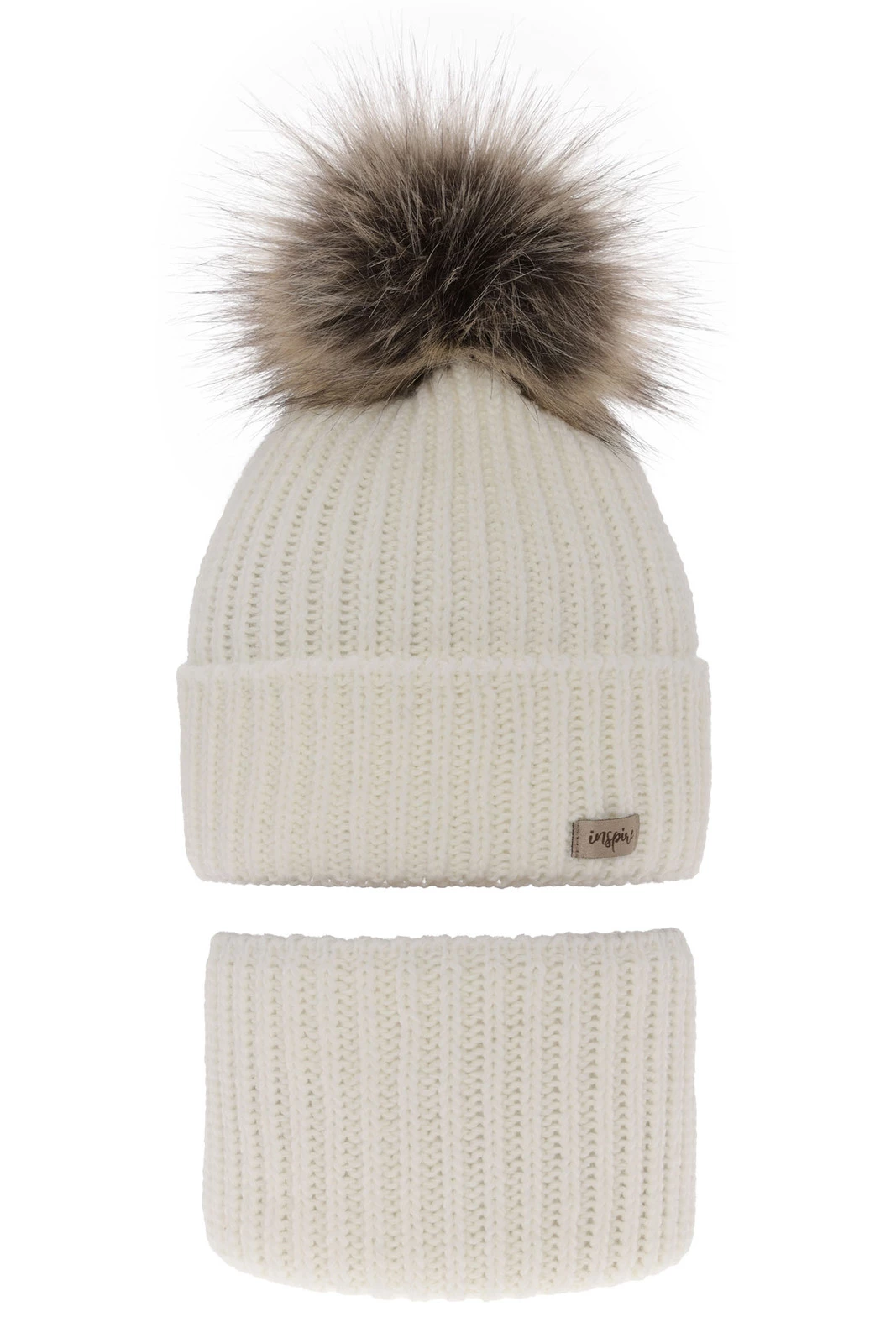 Komplet zimní dívčí: čepice a tunel krémový bambulí Willow