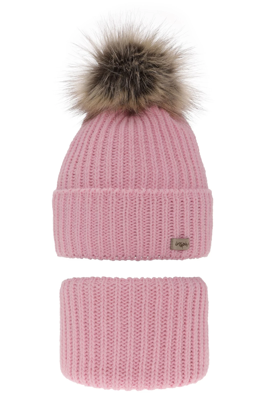 Komplet zimní dívčí: čepice a tunel růžový bambulí Willow