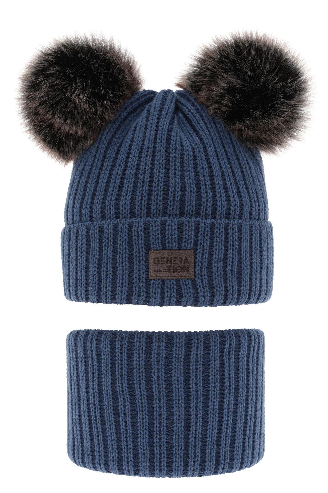 Kompletná zimná detská sada: modrý čiapka a šál s dvoma mašľami Tokio