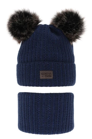 Kompletná zimná detská sada: tmavě modrý čiapka a šál s dvoma mašľami Tokio