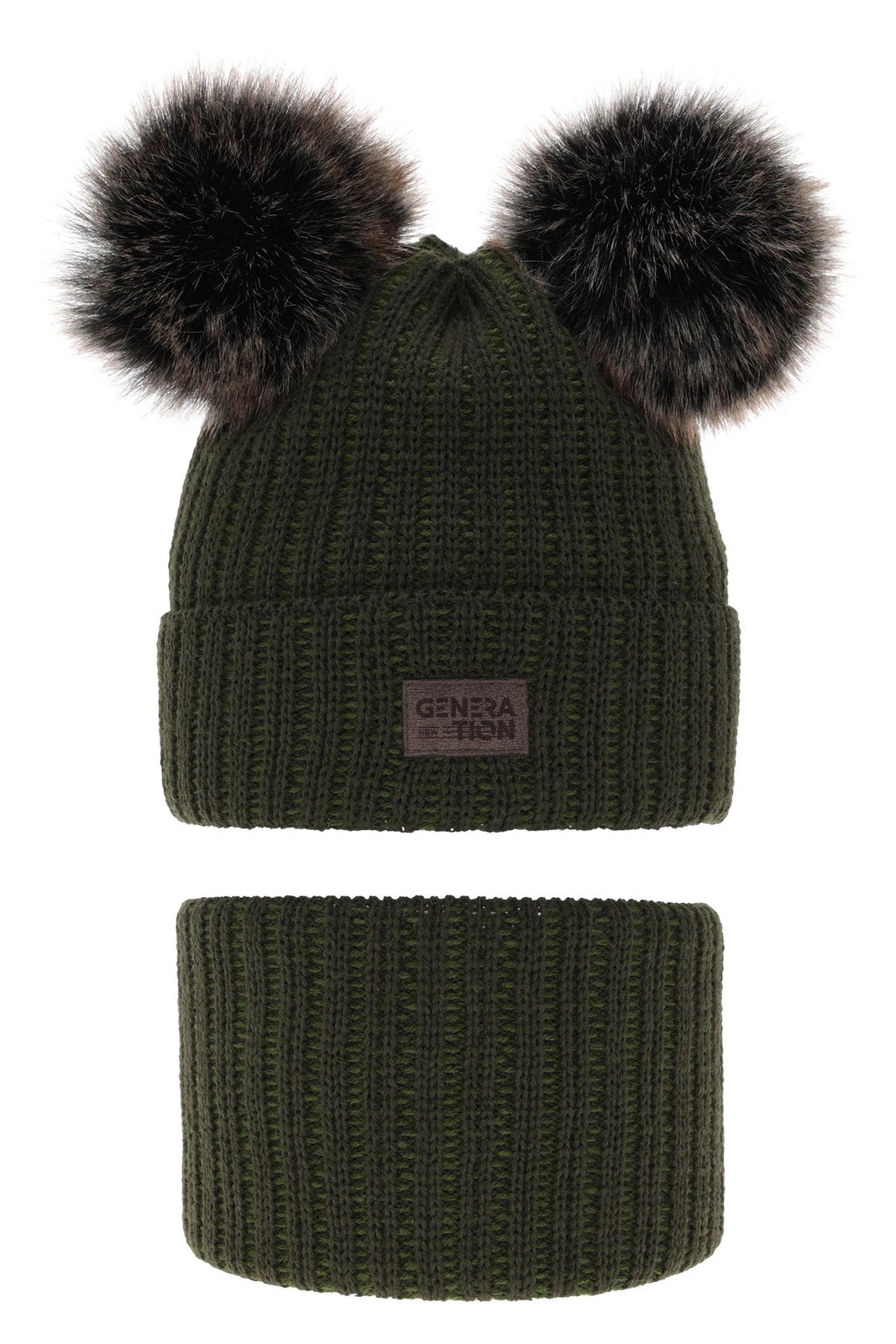 Kompletná zimná detská sada: khaki čiapka a šál s dvoma mašľami Tokio