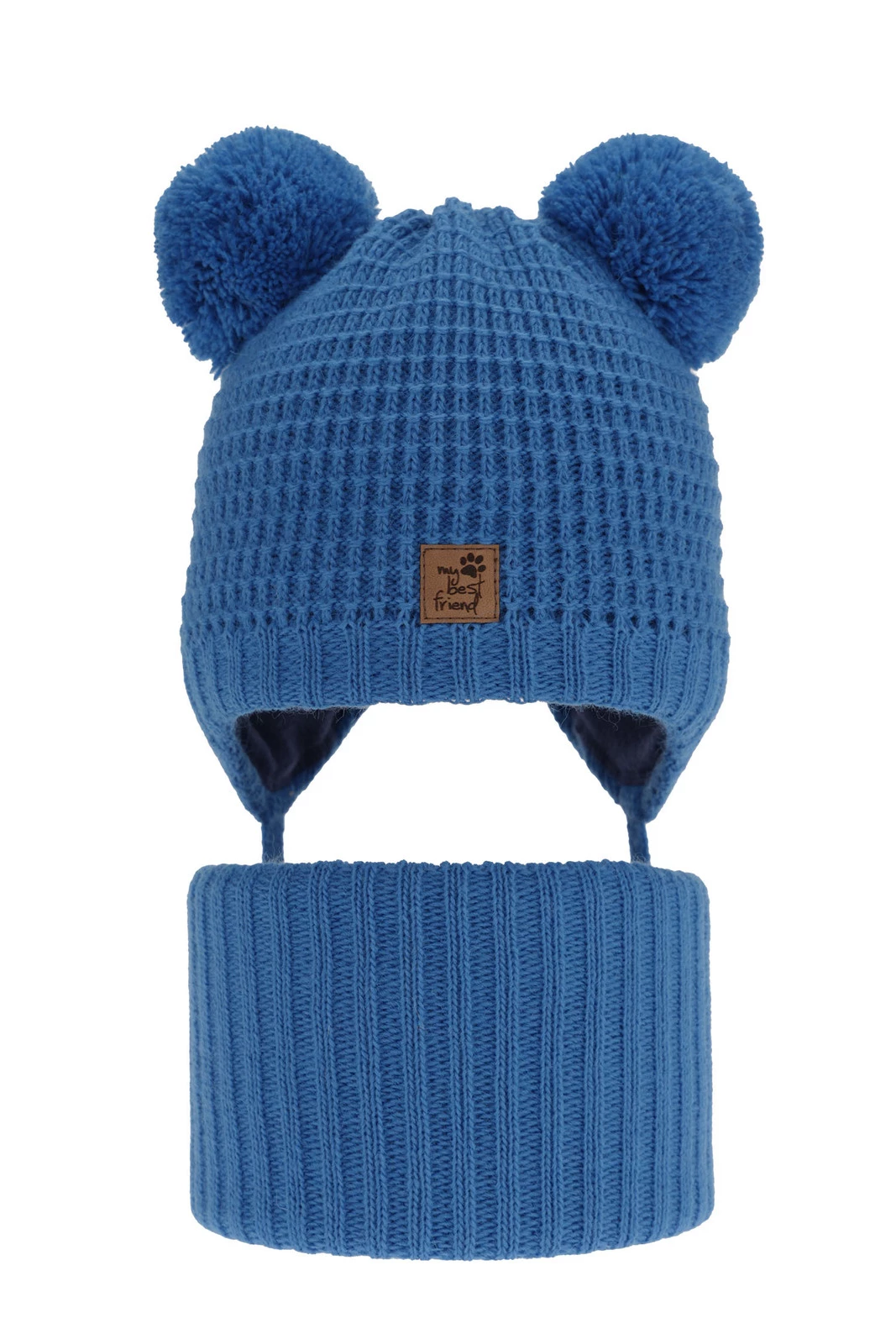 Kompletná zimná detská sada: modrý čiapka a šál s dvoma mašľami Krispi