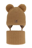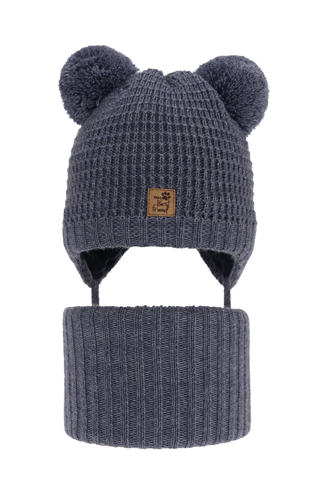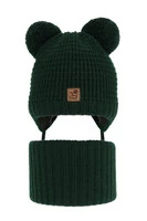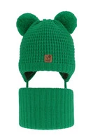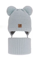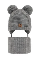 Kompletná zimná detská sada Krispi se vyznačuje žebrovaným vzorem a ozdobnou nášivkou, které jí dodávají charakter a zajišťují, že vaše dítě bude vypadat módně a stylově. Dvě bambule jsou prvkem, který nejen přitahuje pozornost, ale také dodává čepici výjimečný, hravý charakter.