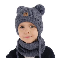 Kompletná zimná detská sada: modrý čiapka a šál s dvoma mašľami Krispi