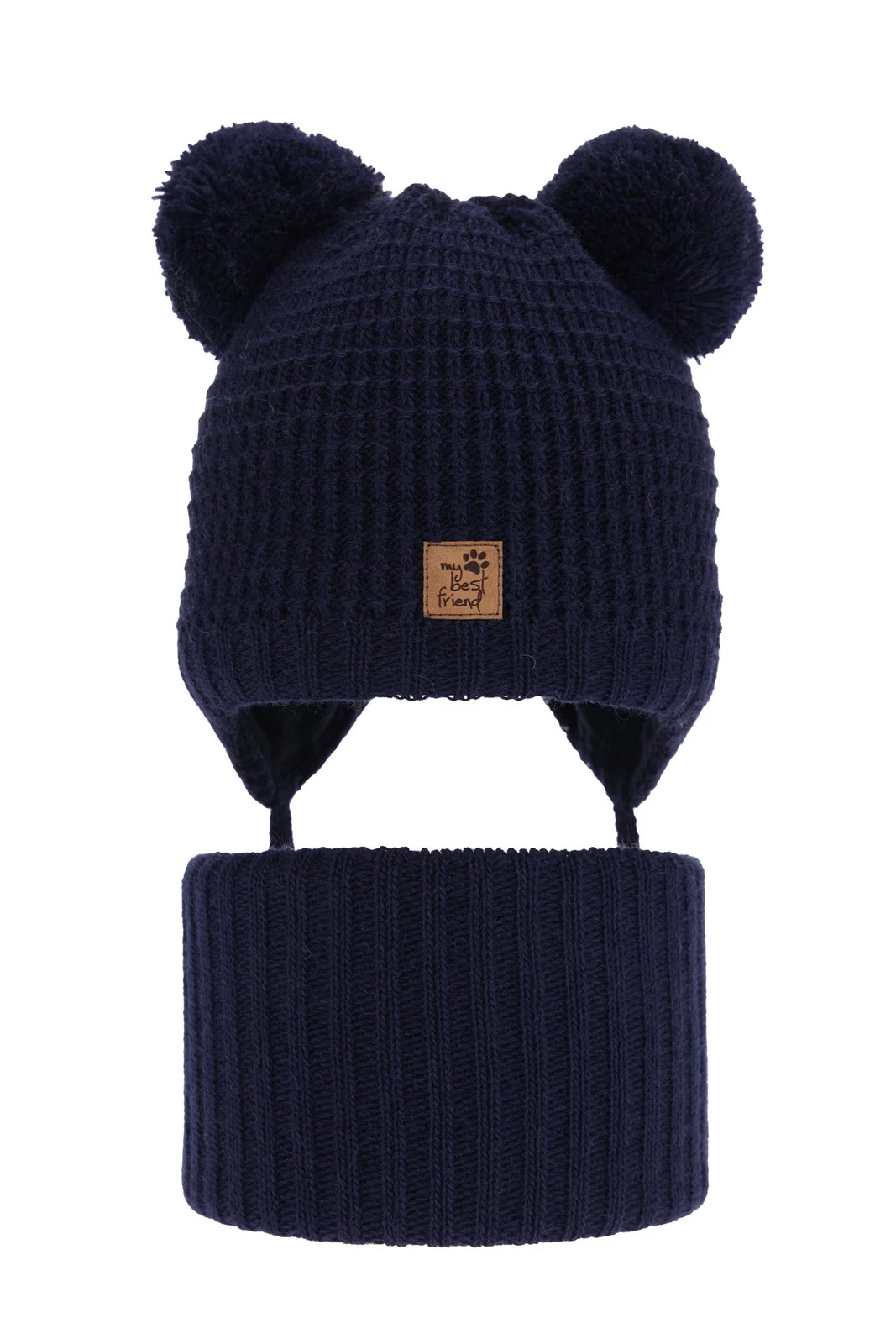 Kompletná zimná detská sada: tmavě modrý čiapka a šál s dvoma mašľami Krispi