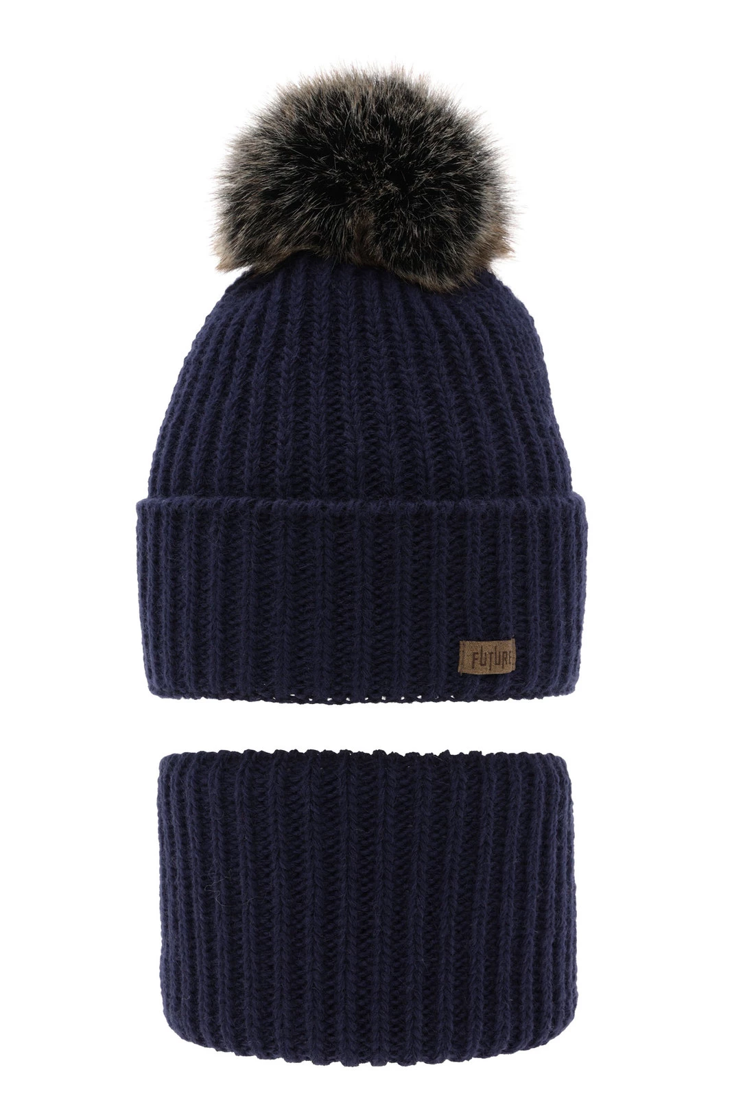 Komplet zimný chlapčenský: čiapka a tunel tmavě modrý s bambuľou Wonder