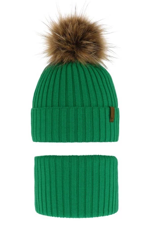 Komplet zimný chlapčenský: čiapka a tunel zelený s bambuľou Onyks