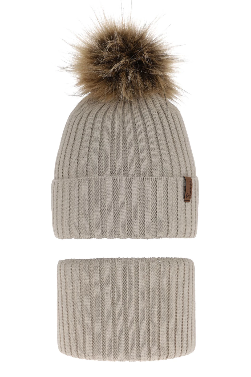 Komplet zimný chlapčenský: čiapka a tunel béžový s bambuľou Onyks