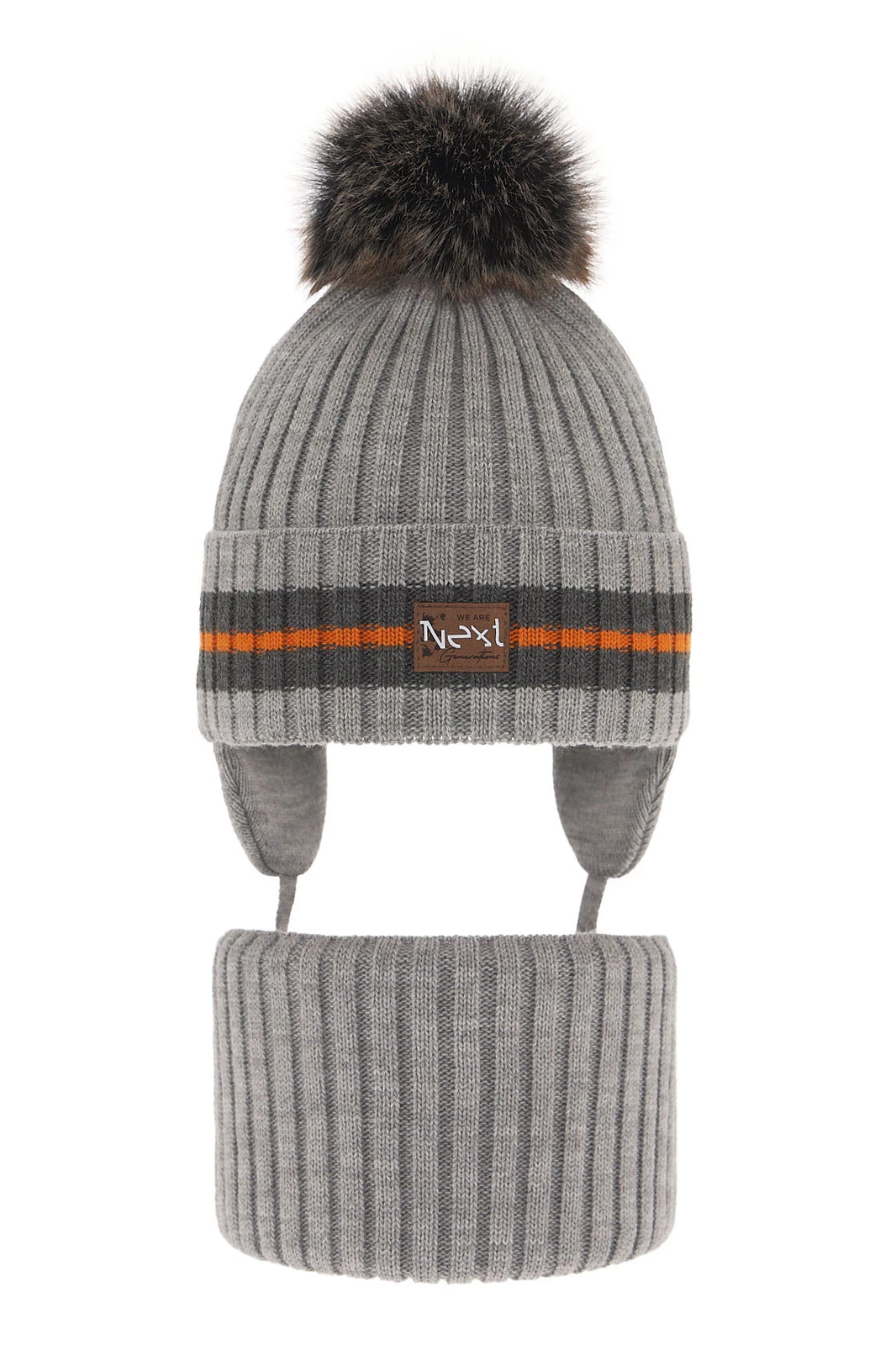 Komplet zimný chlapčenský: čiapka a tunel šedý s bambuľou Echo