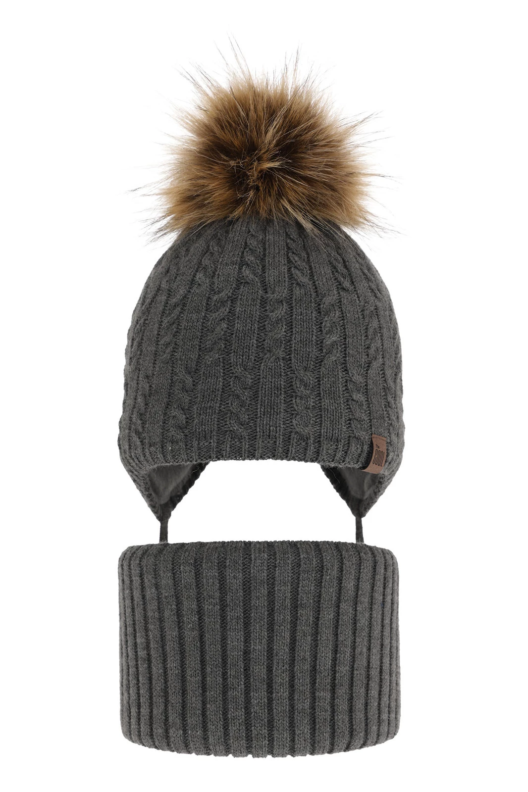 Kompletná zimná detská sada: čiapka a šál šedý s bambuľou Indigo