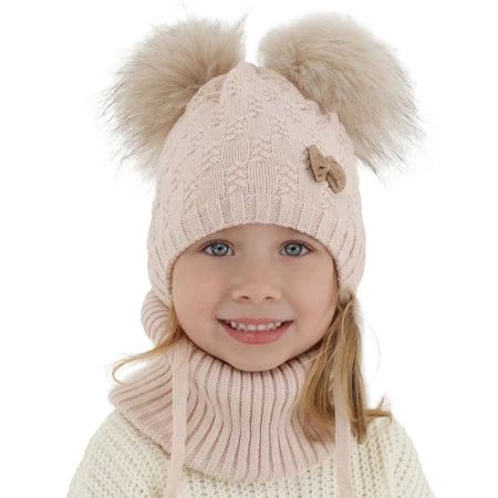 Komplet zimnej dívčej: čiapka a tunel růžový s dvoma bambuľami Bettina