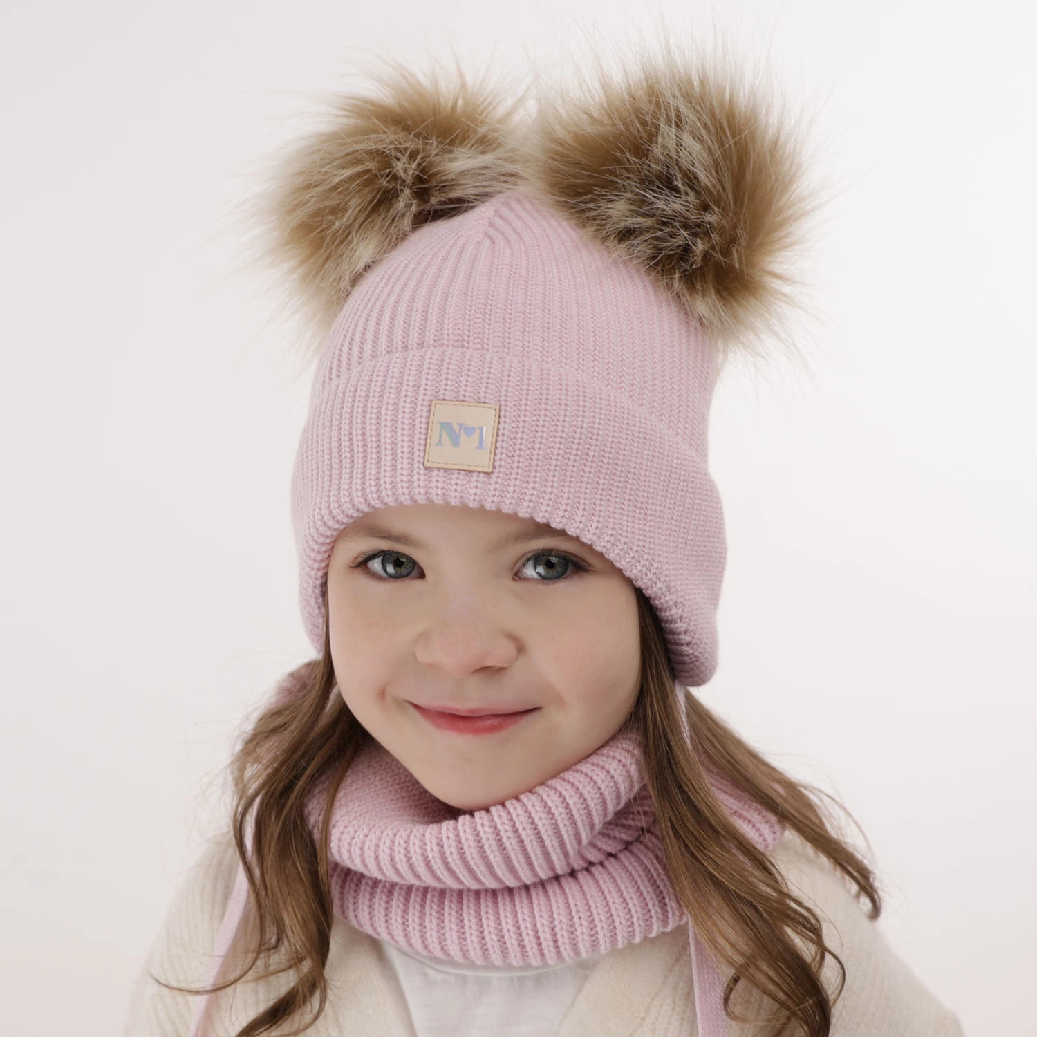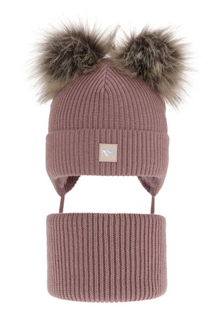 Komplet zimnej dívčej: čiapka a tunel růžový s dvoma bambuľami Kiara