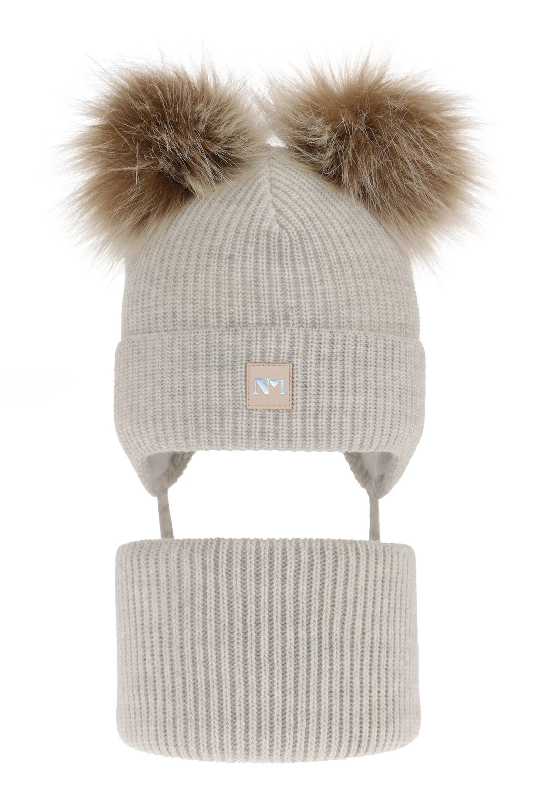 Komplet zimnej dívčej: čiapka a tunel šedý s dvoma bambuľami Kiara