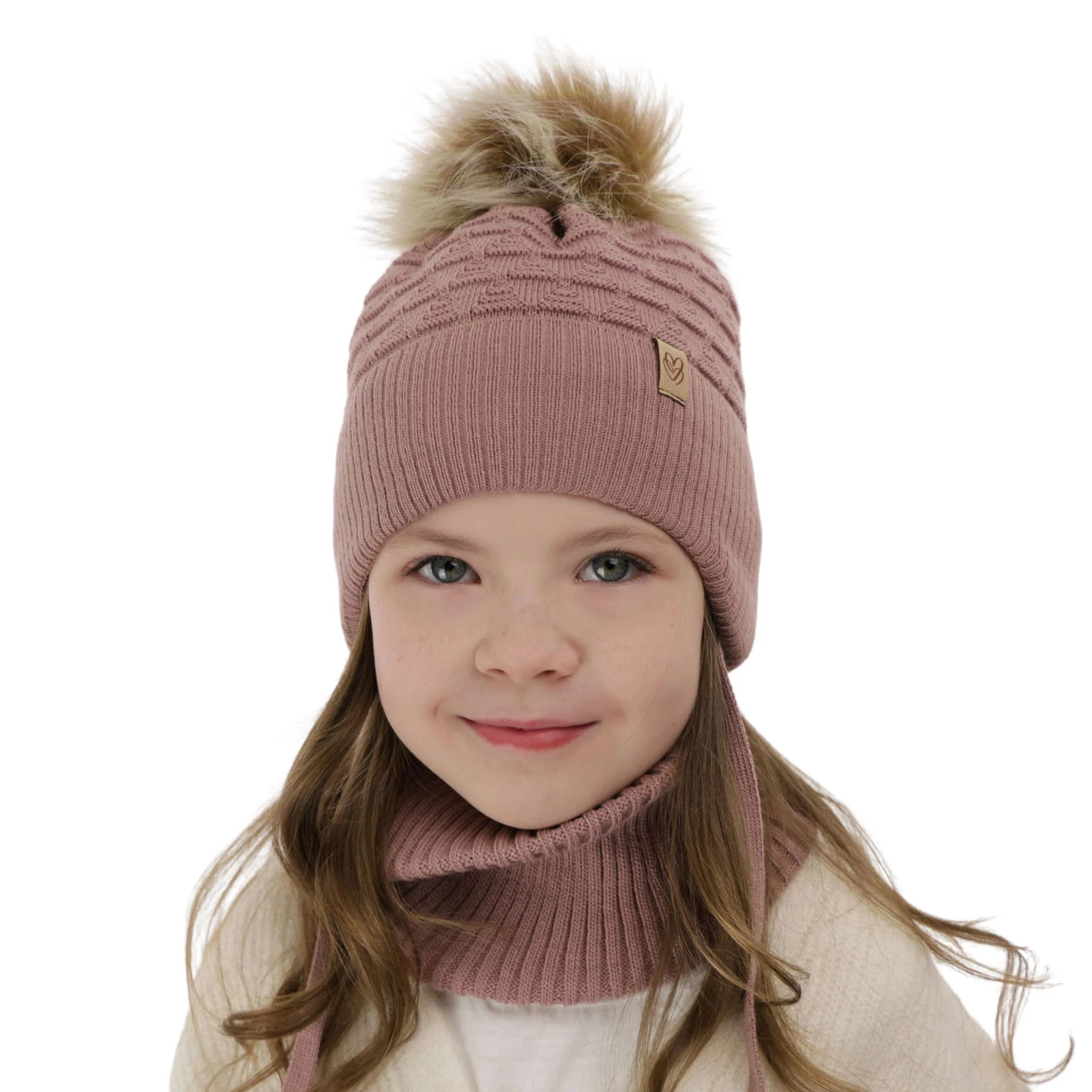 Zavazovací čepice je skutečným hitem mezi zimními pokrývkami hlavy pro dívky. Praktické šňůrky nejen zabraňují sklouznutí během hraní, ale také tvoří módní prvek. Jemný, originální vzor dodává celku charakter, roztomilá nášivka a stylová bambule z eco kožešiny dotvářejí celek, což činí soupravu Egeria stejně roztomilou jako praktickou.