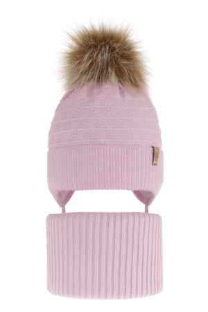 Komplet zimnej dívčej: čiapka a tunel fialový s bambuľou Egeria