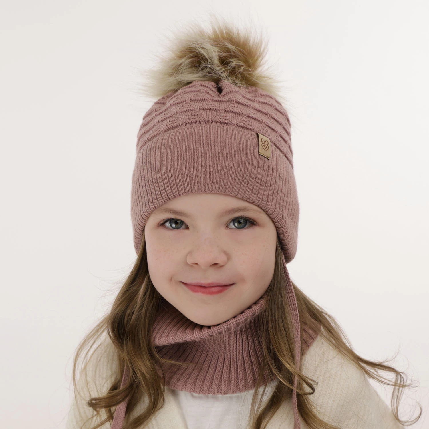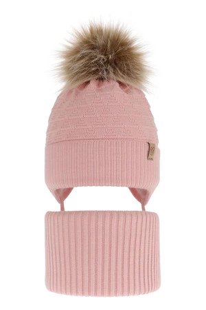 Komplet zimnej dívčej: čiapka a tunel ružový s bambuľou Egeria