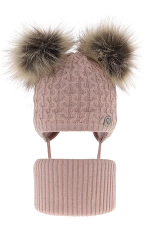 Komplet zimné dievčenské: čiapka a tunel růžový s dvoma bambuľami Poliana