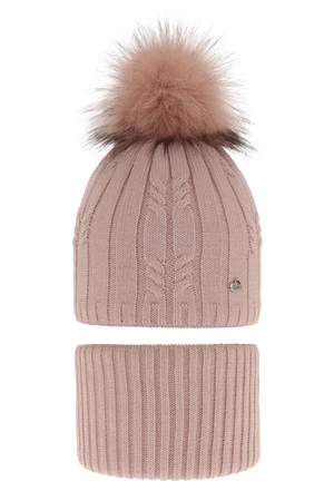 Komplet zimní dívčí: čepice a tunel růžový bambulí Amaltea