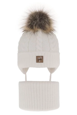 Komplet zimnej dívčej: čiapka a tunel bílý s bambuľou Finess