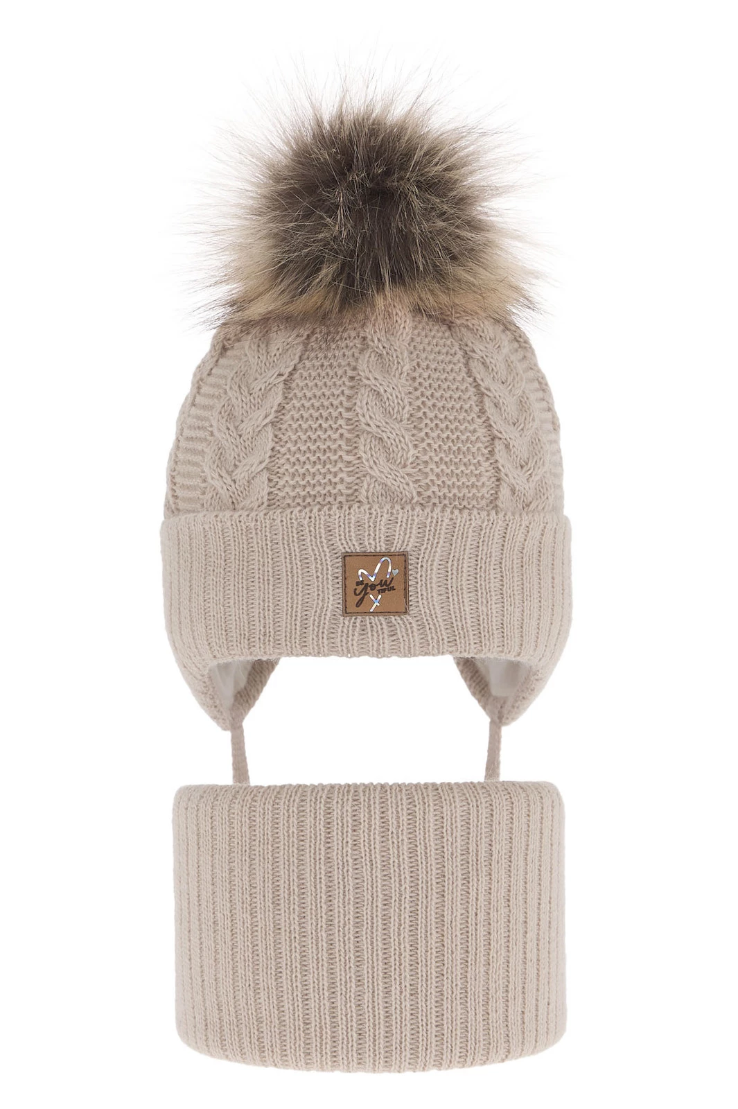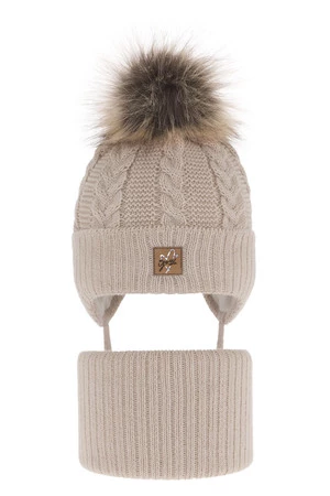 Komplet zimnej dívčej: čiapka a tunel béžový s bambuľou Finess