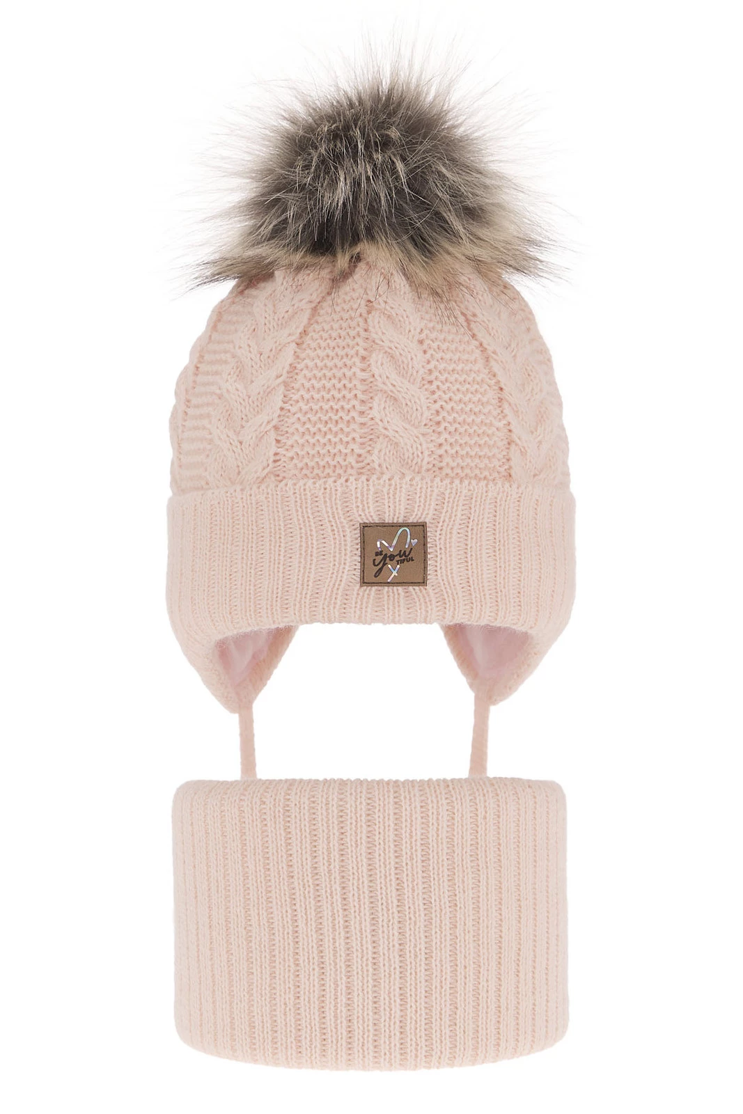 Zimní komplet pro dívky Finess se vyznačuje pečlivě provedeným copánkovým vzorem, který mu dodává nejen jedinečný vzhled, ale zvyšuje také jeho tepelnou izolaci. Čepice má pohodlné šňůrky, díky kterým dokonale přiléhá k obličeji a chrání citlivé uši před chladem, zatímco tunel skvěle chrání krk před větrem.