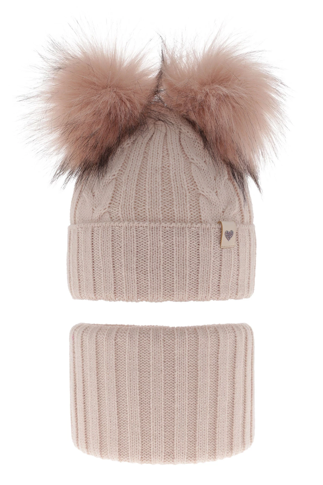 Komplet zimnej dívčej: čiapka a tunel růžový s dvoma bambuľami Amala