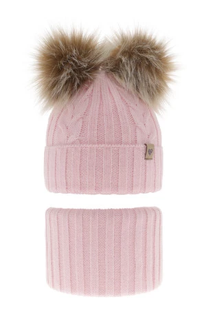 Komplet zimnej dívčej: čiapka a tunel růžový s dvoma bambuľami Amala