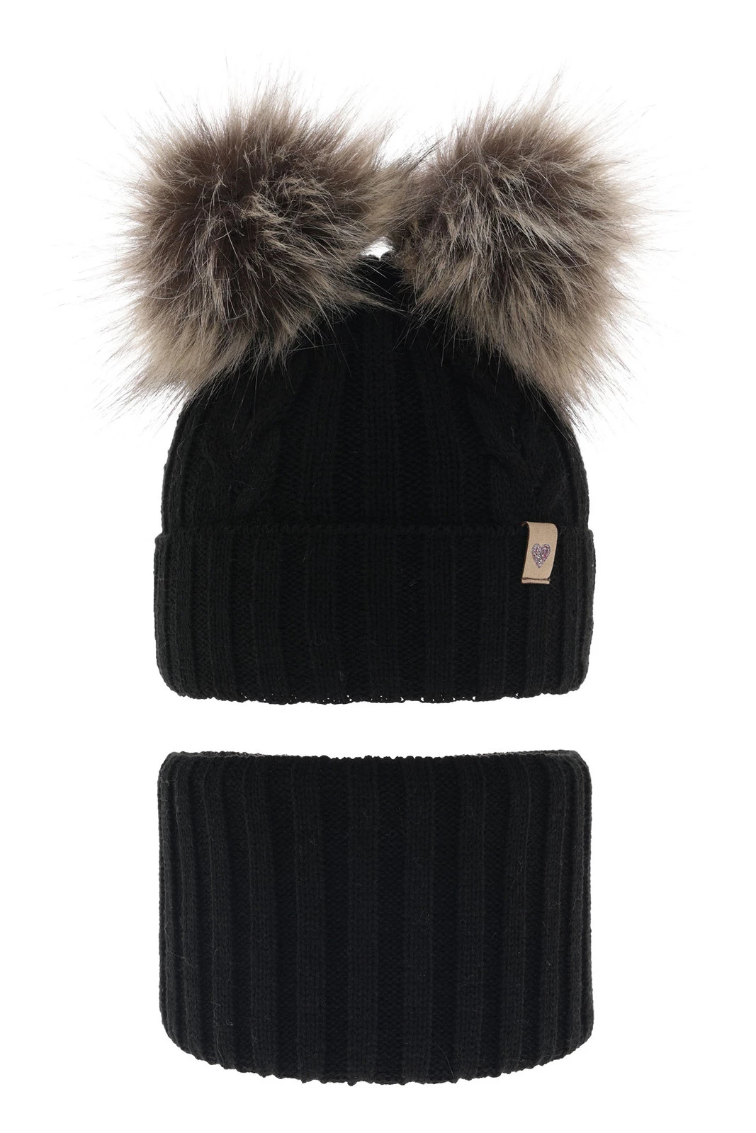 Komplet zimnej dívčej: čiapka a tunel černý s dvoma bambuľami Amala