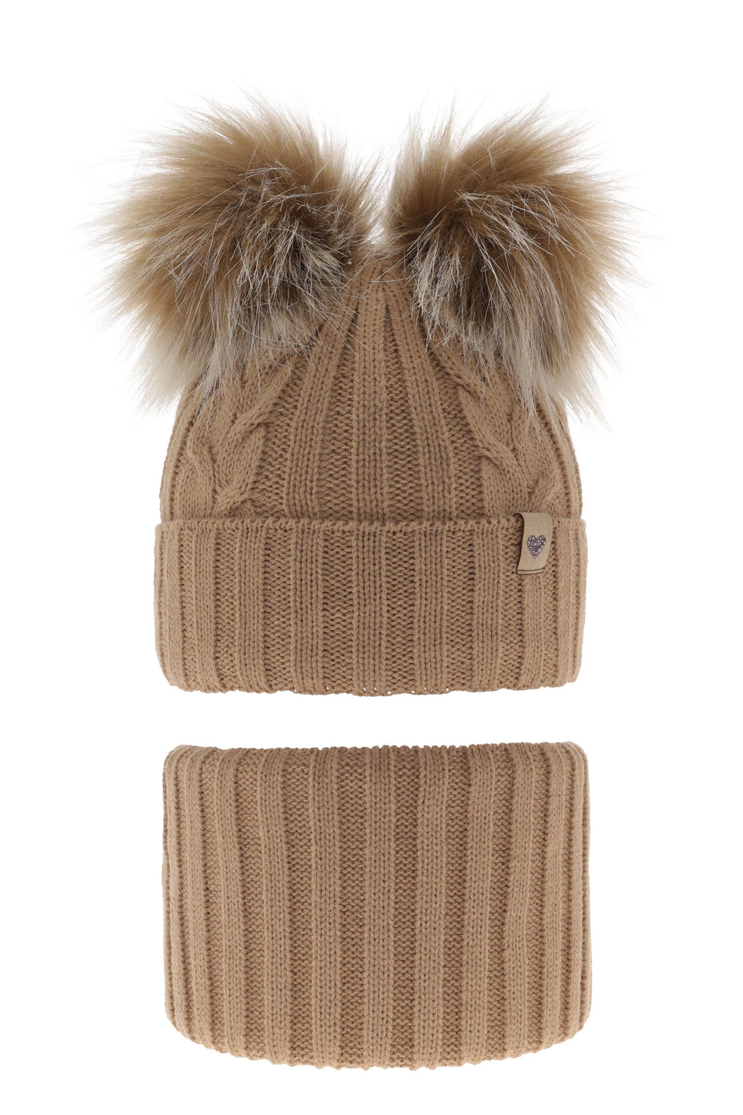 Komplet zimnej dívčej: čiapka a tunel camel s dvoma bambuľami Amala