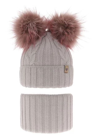 Komplet zimnej dívčej: čiapka a tunel šedý s dvoma bambuľami Amala