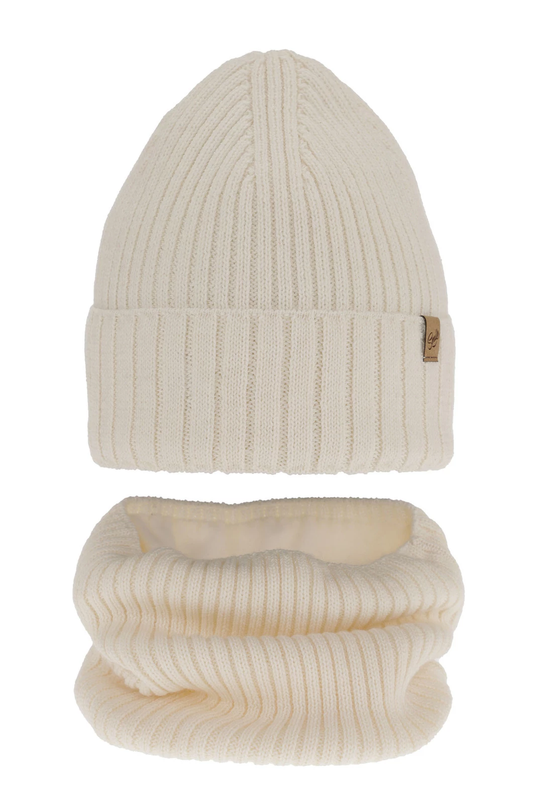 Komplet zimnej dívčej: čiapka a tunel krémový merino vlna Mesalia