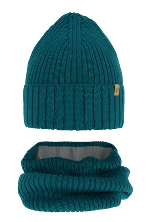 Zimní komplet pro dívky Mesalia je ozdoben roztomilou nášivkou, která dodává celku dívčí charakter. Žebrovaný úplet nejen elegantně vypadá, ale také zvyšuje pružnost materiálu, díky čemuž se čepice a tunel dokonale přizpůsobují tvaru hlavy a krku.