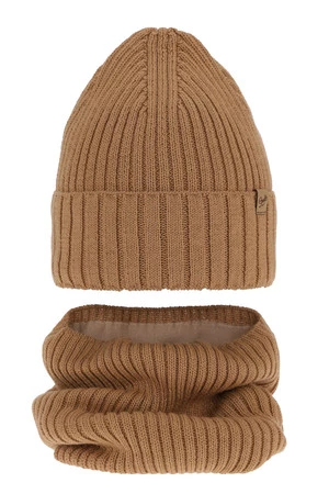 Komplet zimnej dívčej: čiapka a tunel camel merino vlna Mesalia