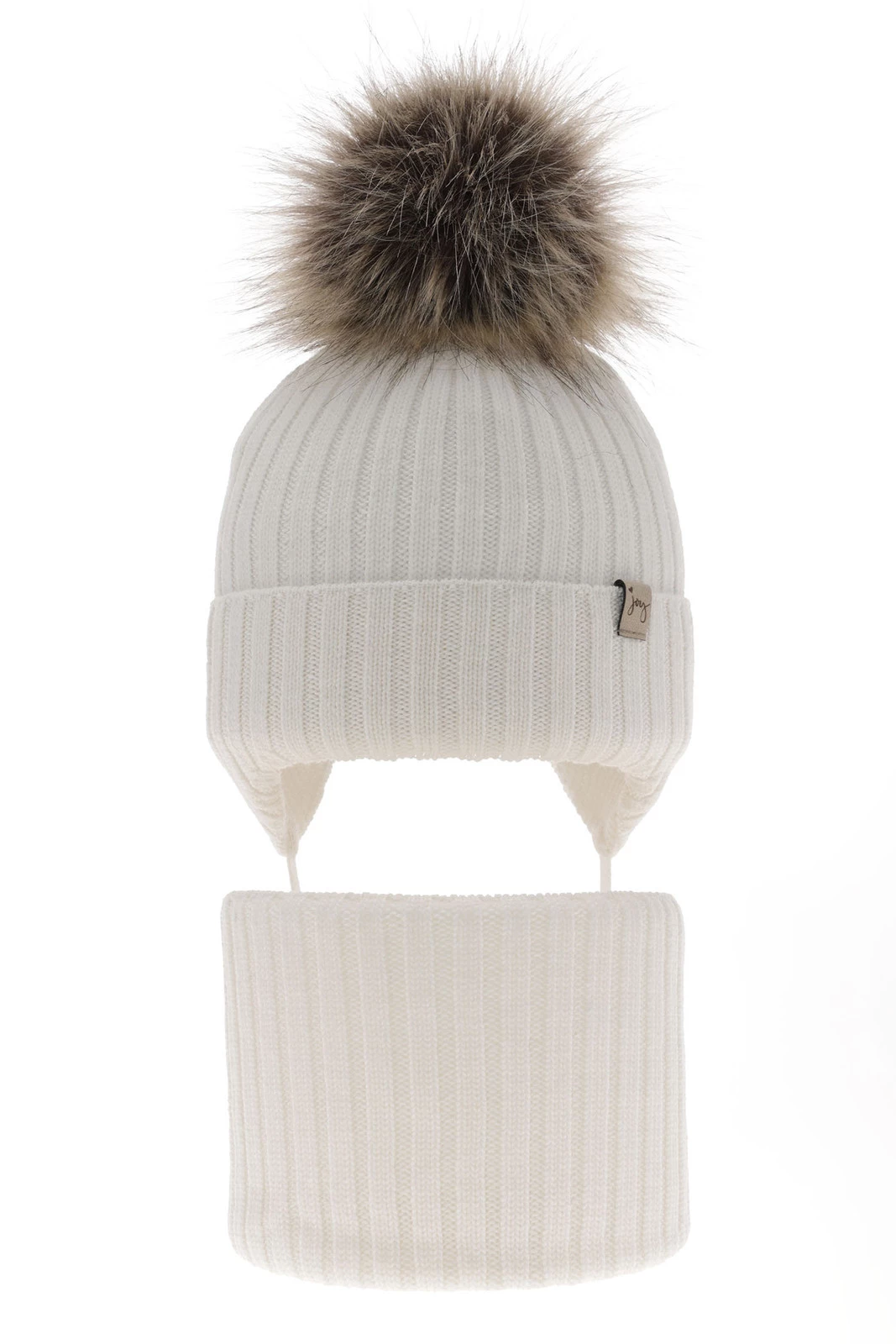 Komplet zimnej dívčí: čepice a tunel bílý 100% extra fine merino vlna Junika