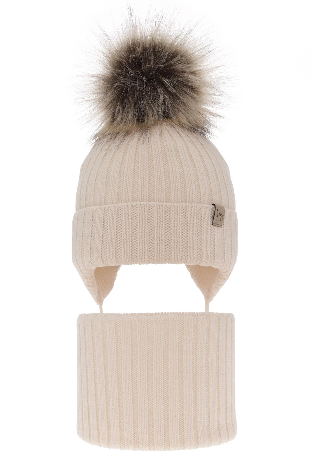 Komplet zimnej dívčí: čepice a tunel béžový 100% extra fine merino vlna Junika