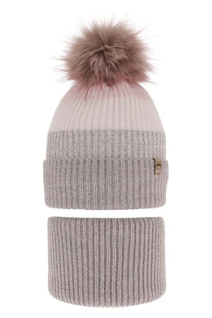 Komplet zimní dívčí: čepice a tunel šedý bambulí Gimena