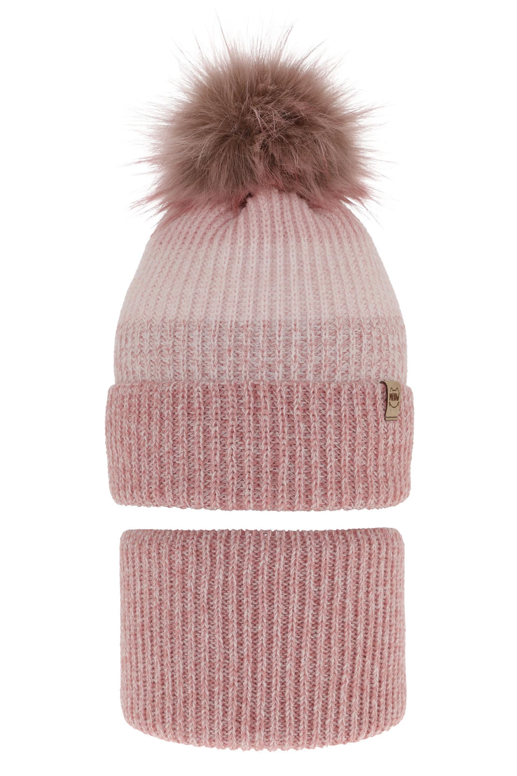 Komplet zimní dívčí: čepice a tunel růžový bambulí Gimena